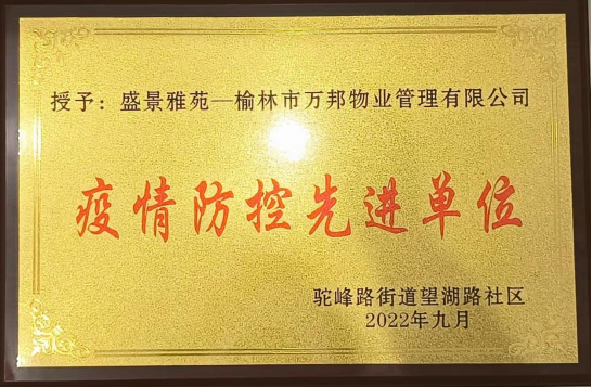 喜訊丨萬邦物業(yè)-盛景雅苑項目被評為“疫情防控先進單位”
