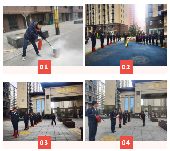 在消防演練現(xiàn)場(chǎng),秩序維護(hù)部隊(duì)長(zhǎng)示范了干粉滅火器的正確使用方法,并安排員工進(jìn)行實(shí)際操作,通過實(shí)操演練的方式,讓員工更加熟練掌握滅火器的使用方法及操作步驟。