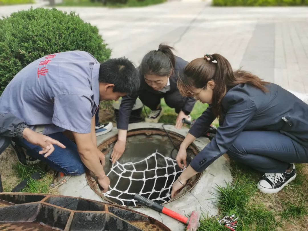 守護(hù)腳底安全|萬邦物業(yè)盛景蘭亭對(duì)園區(qū)內(nèi)各類管道井口加裝防墜網(wǎng)