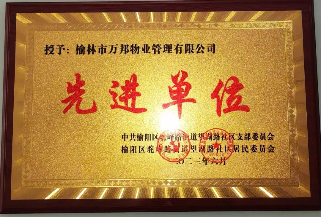 星光不負(fù)趕路人,時(shí)光不負(fù)有心人。近日,榆陽(yáng)區(qū)駝峰路街道望湖路社區(qū)召開(kāi)了“社區(qū)物業(yè)聚合力,共筑共建謀新篇”社區(qū)建設(shè)工作大會(huì),萬(wàn)邦物業(yè)下屬盛景雅苑物業(yè)服務(wù)中心在眾多物業(yè)服務(wù)企業(yè)中脫穎而出,被榆陽(yáng)區(qū)駝峰路街道望湖路社區(qū)授予2023年度物業(yè)“先進(jìn)單位”榮譽(yù)稱(chēng)號(hào)。